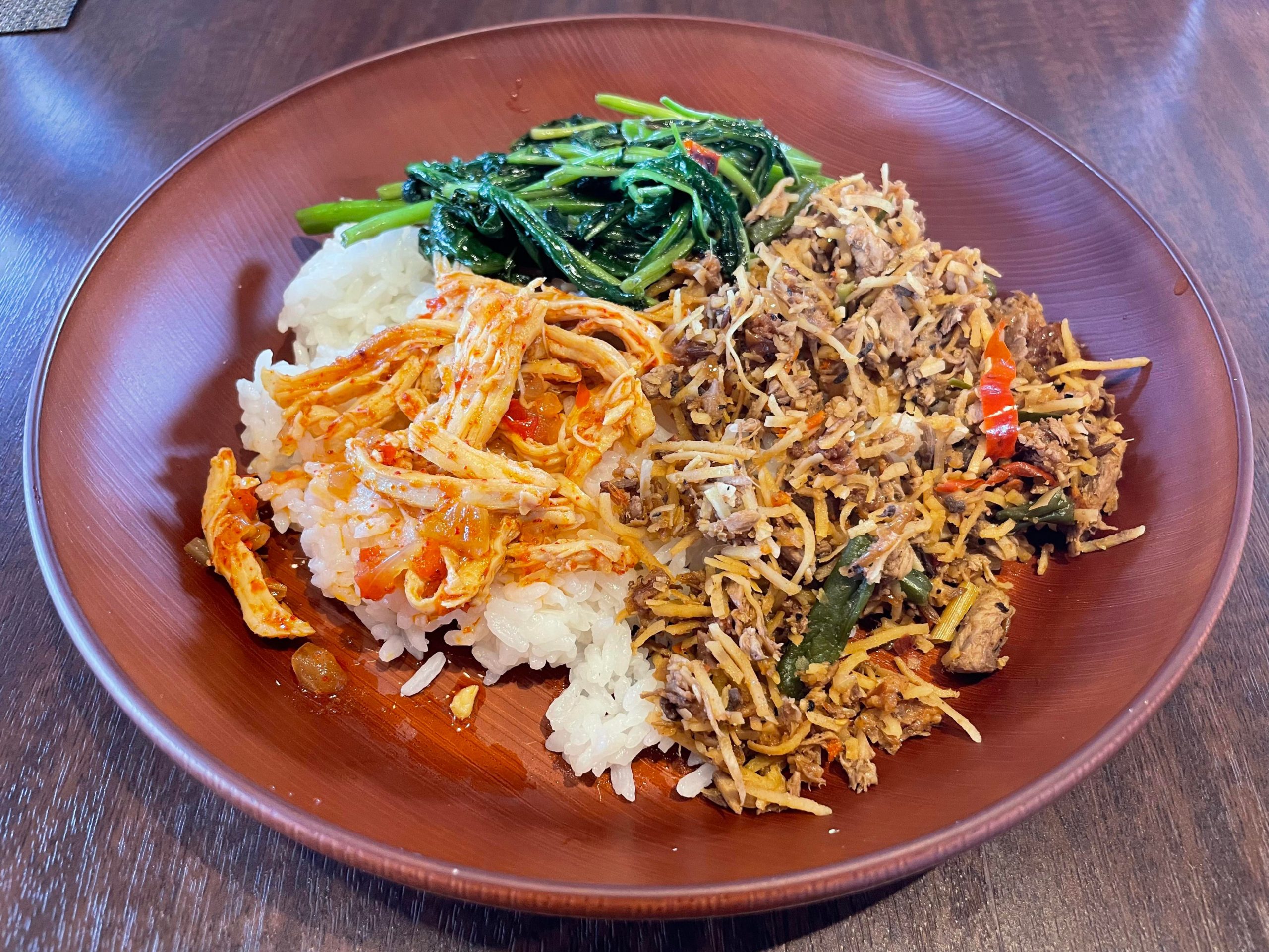 Pedas Chanpuru 起源於印度尼西亞,已被改編成氣仙沼版的鰹魚菜餚。 Pedas = 請享受辛辣的食材與米飯的混合。完美的夏季菜單,以其辛辣和民族風味刺激您的食慾。